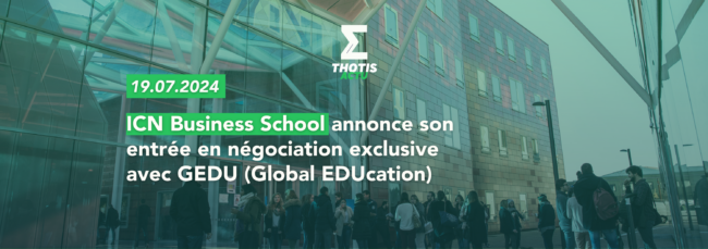 Afin de poursuivre sa stratégie de développement en France et à l’international, ICN Business School, référence de l’enseignement supérieur, entre en négociation exclusive avec GEDU.  L’enseignement supérieur est actuellement confronté à des bouleversements majeurs de ses fondamentaux de marché (concurrence renforcée, accélération nécessaire des investissements matériels et immatériels, investissements en capital humain – accompagnement étudiants,…