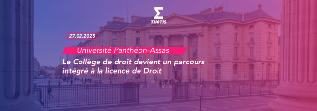 Créé en 2008, le Collège de droit de l’Université Panthéon-Assas, première filière sélective d’excellence en France, renforce son ambition et son attractivité en proposant un parcours intégré à la licence de Droit dès la rentrée 2025-2026.   À lire aussi, sur Thotis : Stéphane Braconnier, Président de l’Université Paris-Panthéon-Assas, un acteur universitaire engagé, en phase…