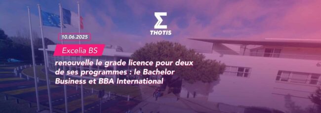 Excelia Business School a obtenu le renouvellement du grade de Licence pour deux de ses programmes : le Bachelor in Business Administration (BBA) International en 4 ans et le Bachelor Business en 3 ans. Ce double renouvellement témoigne de l’engagement constant d’Excelia Business School en faveur de l’excellence académique. “Le renouvellement du grade Licence pour les programmes Bachelor Business et BBA d’Excelia Business School est une reconnaissance forte de l’exigence…