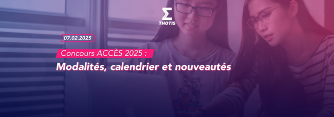 Le Concours ACCÈS, dont les 3 écoles composantes sont l’ESDES, l’ESSCA et l’IÉSEG, dresse un bilan de l’année écoulée et dévoile plusieurs nouveautés pour l’édition 2025. Thotis vous dit tout sur le Concours ACCÈS 2025 ! OrientationParcoursupNotre Test Parcoursup Ressources complémentaires : Télécharge et reçois 300 exemples de lettres de motivation Parcoursup Tout savoir sur…