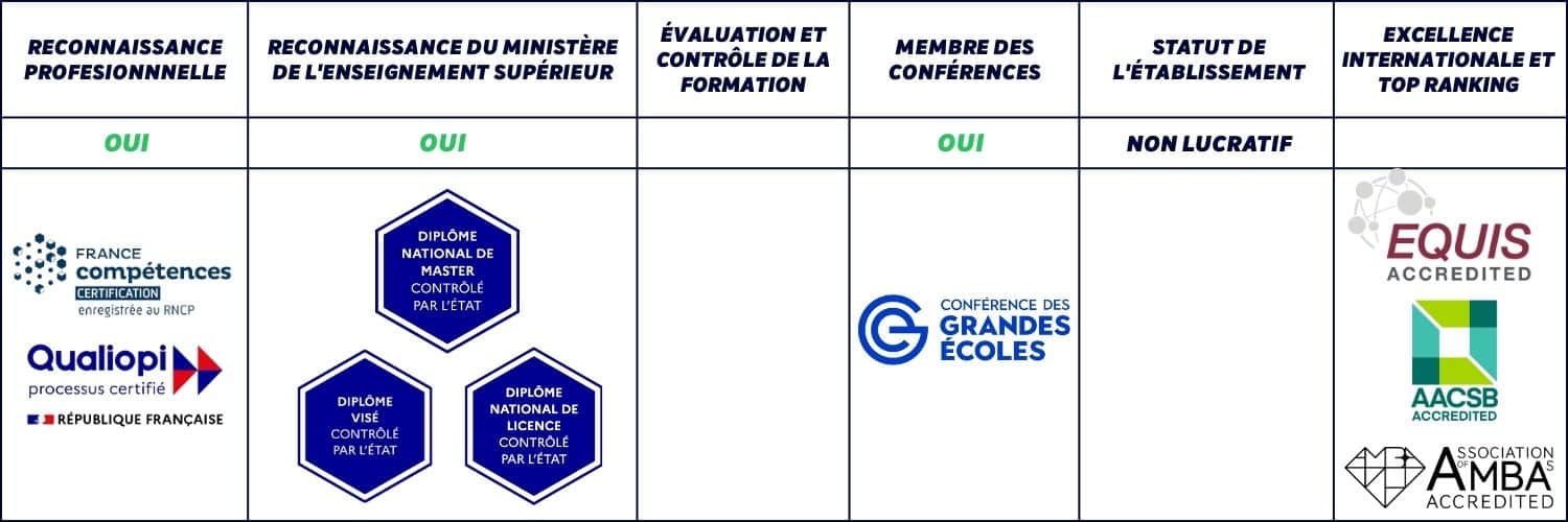 Les écoles membres du concours commun présentent toutes les garanties d’une excellence académique tant par la nature du diplôme visé et reconnu par l’État français que par les labellisations internationales (multiples accréditations). Elles vous assurent de la qualité du grade de master délivré et d’une insertion professionnelle dans les meilleures conditions.