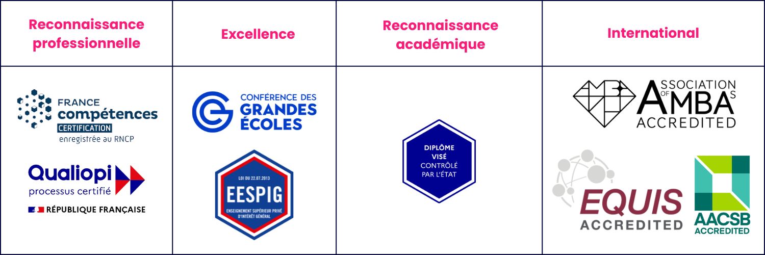 Elle détient la triple couronne EQUIS, AACSB et AMBA, détenue par seulement 1% d’institutions dans le monde.