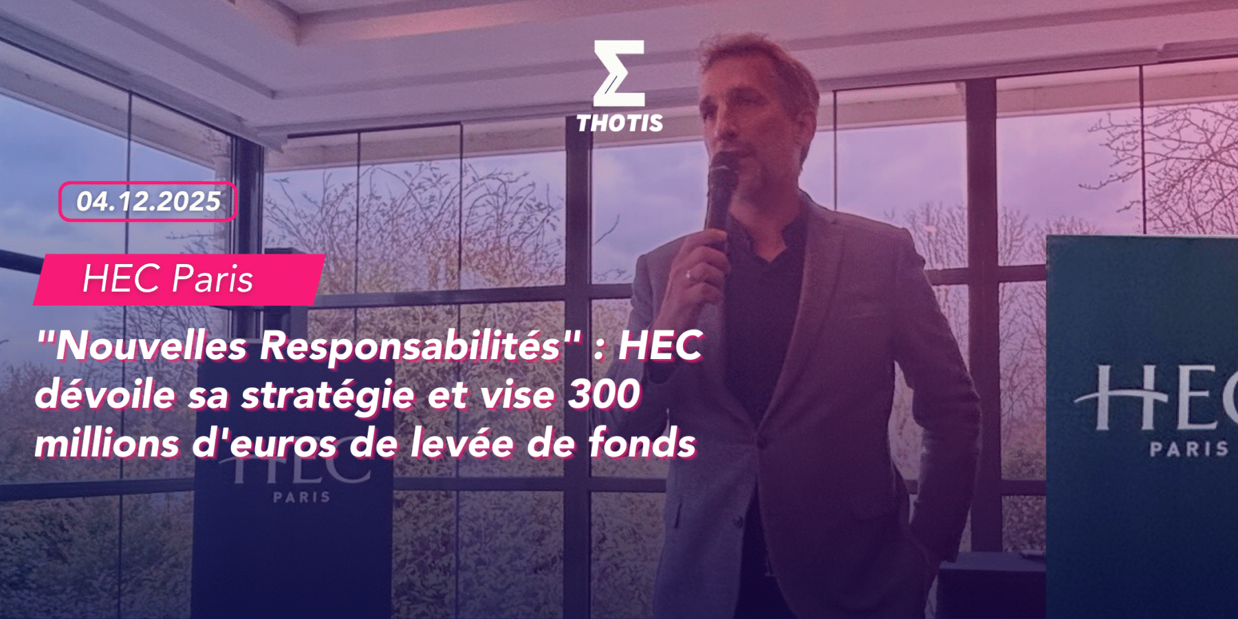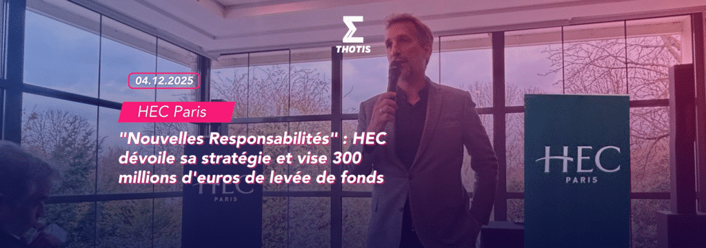 HEC Paris a présenté, le 25 novembre 2025, sa nouvelle stratégie “Nouvelles Responsabilités”, portée par Éloïc Peyrache, sous son second mandat à la direction générale de l’école. Dans un monde où le débat d’idées s’assèche, où l’ascenseur social est en panne et où les défis sont nombreux, l’école de management entend assumer un rôle d’engagement sociétal beaucoup plus profond. L’établissement se donne pour objectif de contribuer davantage à la diffusion gratuite de connaissances auprès du plus grand nombre et entend s’affirmer comme une plateforme de référence de l’enseignement supérieur en termes de co-construction de solutions durables et inclusives aux grands enjeux de société.
