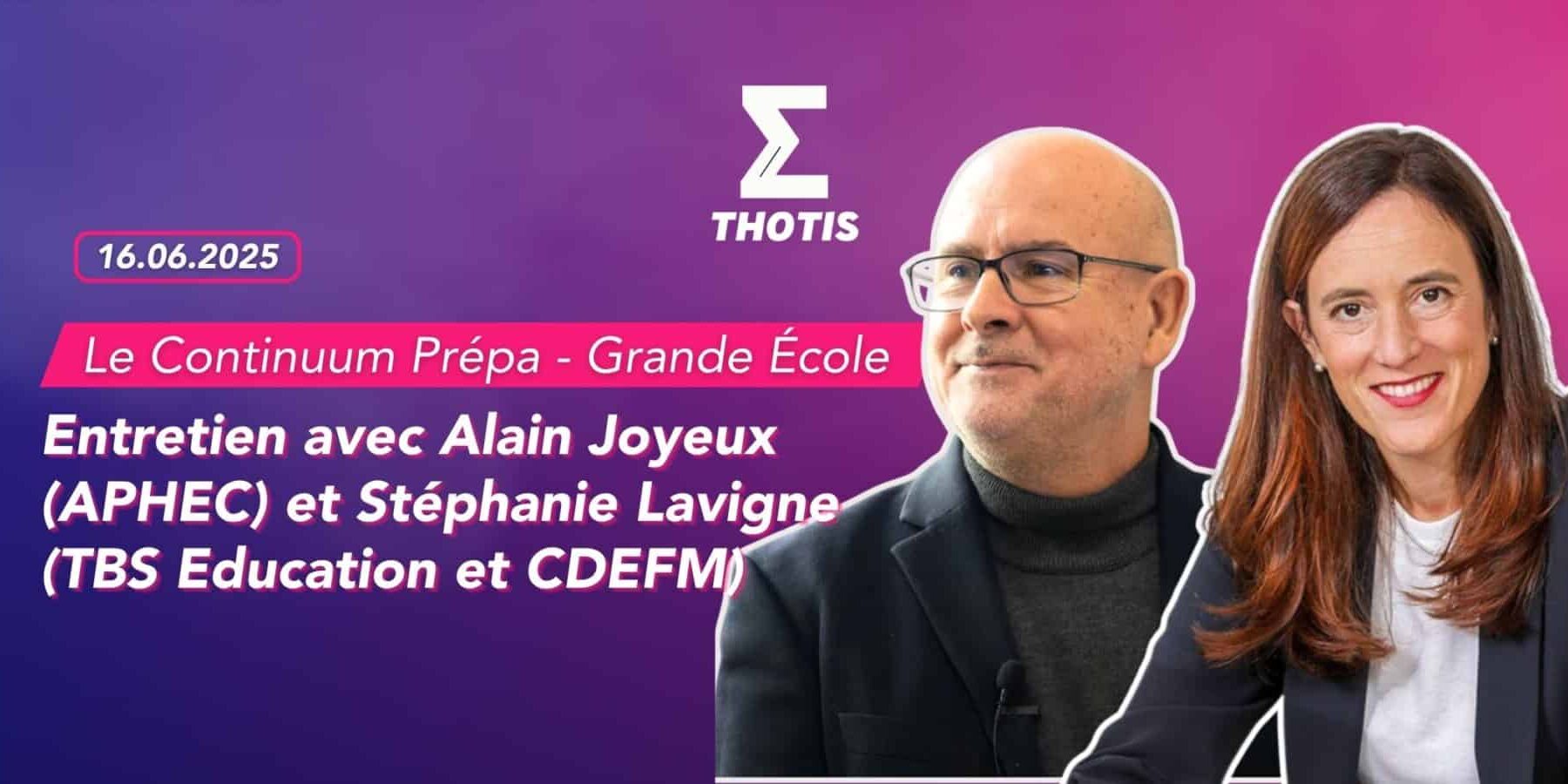 Depuis plusieurs années, l’APHEC (Association des Professeurs des classes préparatoires ECG, ECT, ATS, ECP, D1 et D2) et la CDEFM (Conférence des Directeurs des Écoles Françaises de Management) œuvrent ensemble pour défendre le modèle de la classe préparatoire et valoriser le continuum Prépa – Grande École. Alain Joyeux, professeur de géopolitique en ECG (1re et 2e année) au lycée Joffre à Montpellier et président de l’APHEC, ainsi que Stéphanie Lavigne, Directrice générale de TBS Education et vice-présidente de la CDEFM, ont accepté de répondre à nos questions pour Thotis Prépa, dans un entretien croisé.