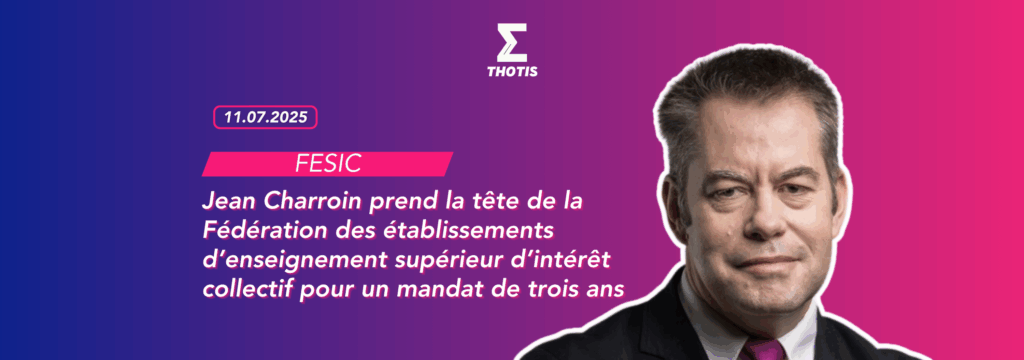 Jean Charroin prend la tête de la Fesic (Fédération des établissements d’enseignement supérieur d’intérêt collectif) pour un mandat de trois ans. Sa nomination à la présidence a été validée à l’unanimité par le conseil d’administration, a annoncé la Fesic à News Tank le 11 juillet 2025. Il succède à Philippe Choquet, directeur général d’UniLaSalle, qui occupait cette fonction depuis 2017. Ce dernier reste cependant impliqué dans la gouvernance de la fédération en tant que vice-président, aux côtés de Laure Viellard, directrice de l’Esta.
