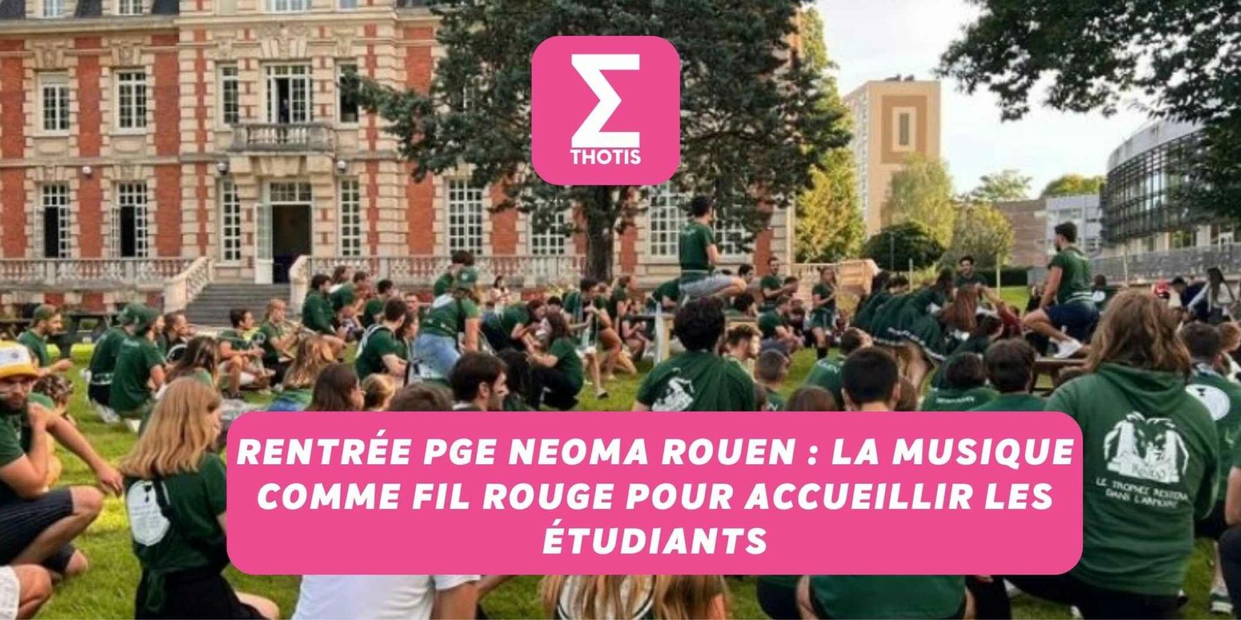 À l’occasion de leur rentrée 2023-2024 ce 5 septembre, les nouveaux étudiants du Programme Grande École se sont retrouvés dans l’enceinte du grand parc de NEOMA à Rouen. Afin de mettre en valeur la philosophie de l’école, son équipe pédagogique et d’inspirer ses nouveaux arrivants, l’école avait prévu de diviser la journée en deux temps ; une matinée de conférences et un atelier musical l’après-midi.