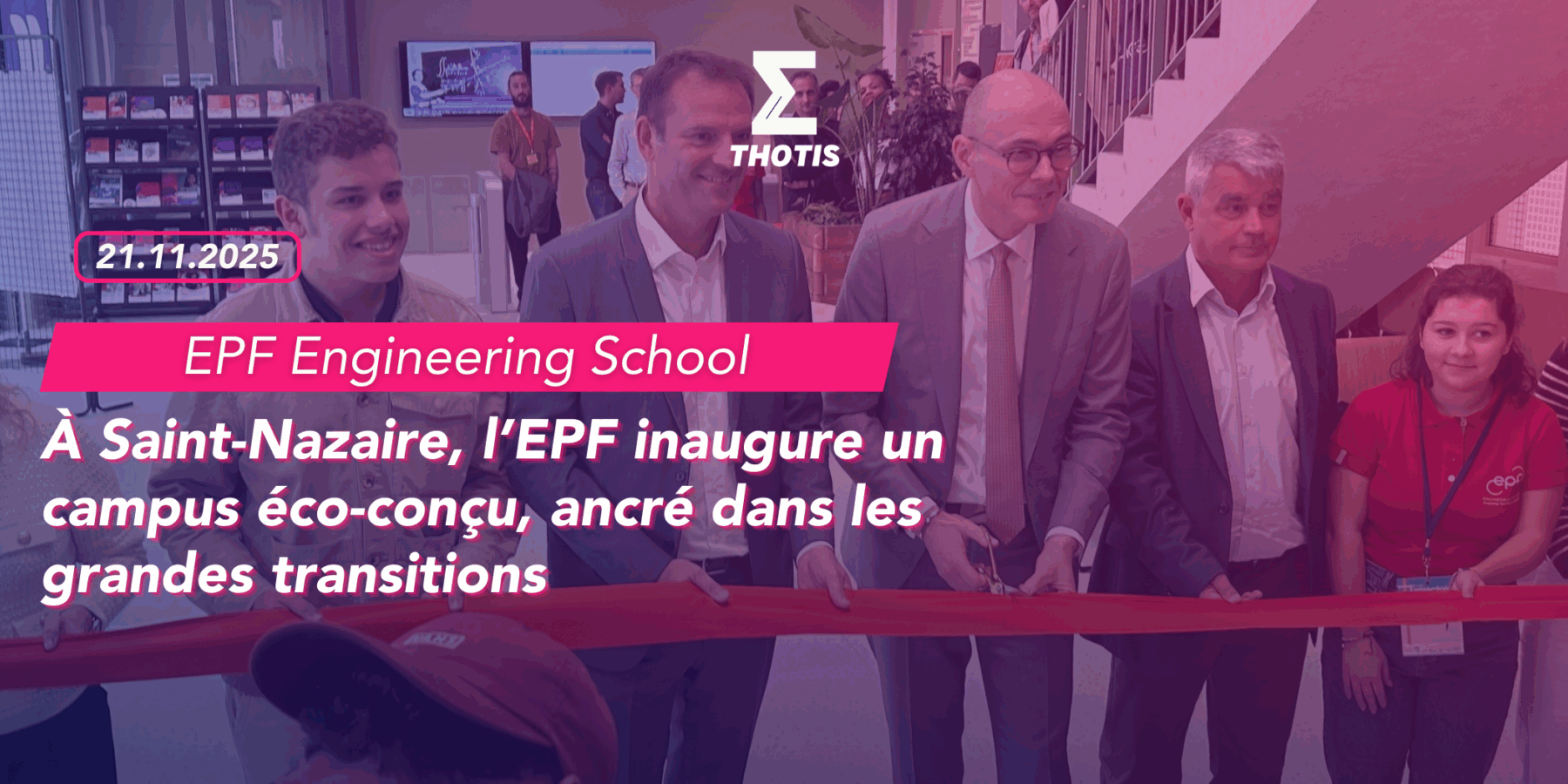 L’EPF Engineering school a inauguré le 7 novembre 2025 son nouveau campus de Saint-Nazaire, installé au cœur du secteur Ville-Port. Le projet de site, initié en 2021 et ouvert aux premiers étudiants en septembre dernier, marque l’ancrage de l’école d’ingénieurs dans le territoire Grand Ouest. Sur près de 3 500 m2, 88 étudiants -dont une quinzaine d’apprentis- ont déjà investi les lieux. L’objectif de la grande école d’ingénieurs est d’en accueillir 500 d’ici 2034.