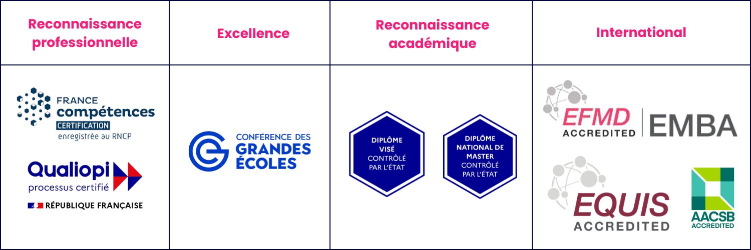Multi-accréditée (AACSB, EQUIS, EFMD Accredited EMBA), l’école est reconnue dans le monde entier pour sa recherche, plus de 70 programmes d’excellence et sa structure internationale multisite dans six pays : Afrique du Sud, Brésil, Canada, Chine, Émirats arabes unis, États-Unis, France.